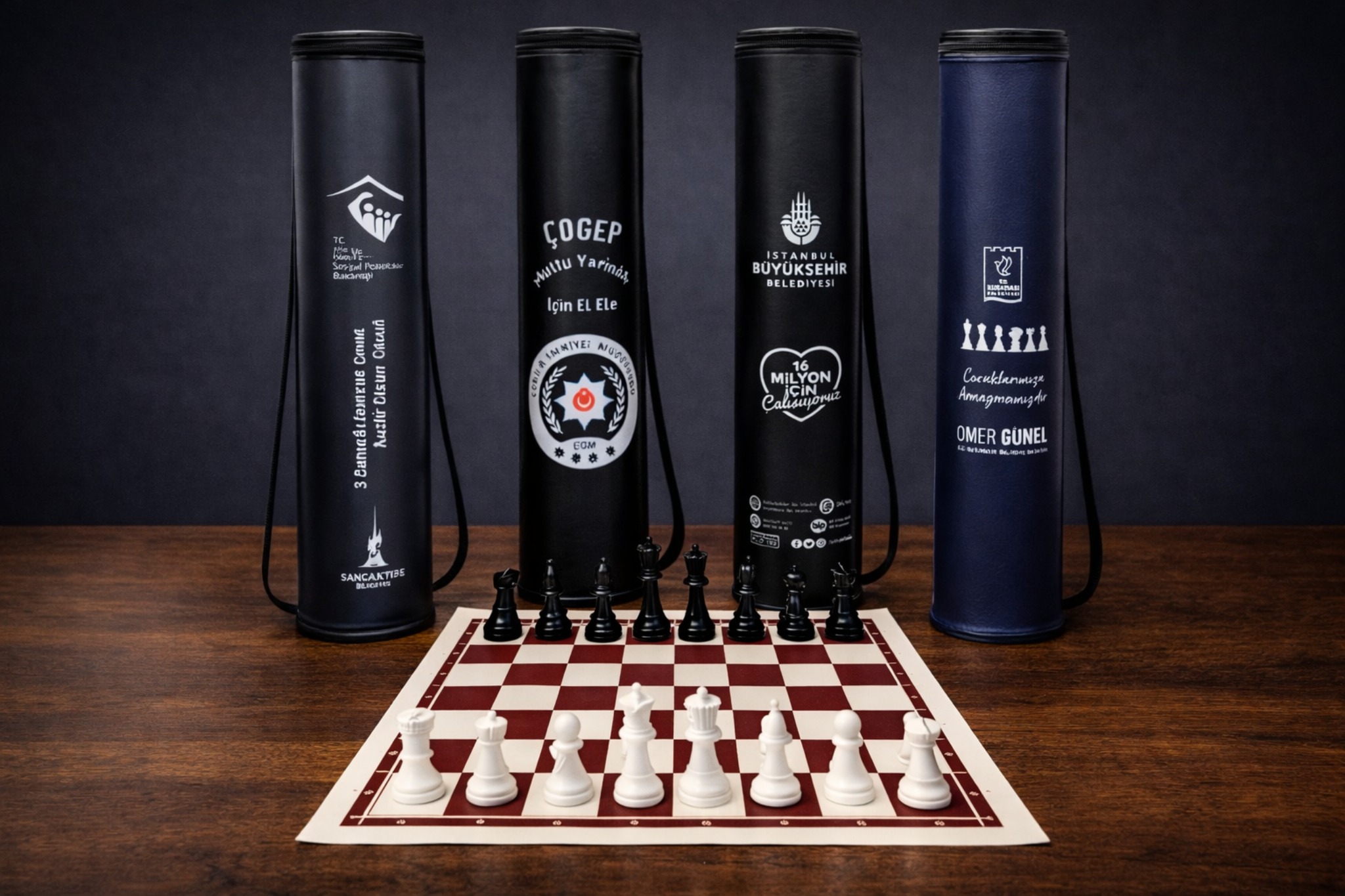 Kurumsal promosyonlar, okullar ve organizasyonlar için özel olarak üretilen suni deri rulo satranç takımı; şık görünümü ve dayanıklı yapısıyla dikkat çeker. Firmanıza özel baskı yapılabilen bu ürün, markanızı uzun süre görünür kılan etkili bir tanıtım aracıdır.